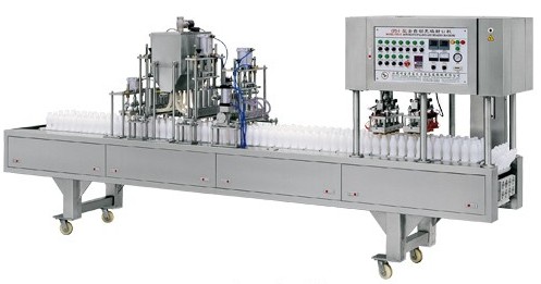可設(shè)計(jì)制作為全自動(dòng)充填沖蓋封口機(jī)。全自動(dòng)設(shè)備工藝流程:人工放瓶→自動(dòng)管正瓶子→自動(dòng)灌裝→自動(dòng)沖鋁蓋→自動(dòng)上鋁蓋→自動(dòng)封口→自動(dòng)退瓶子。